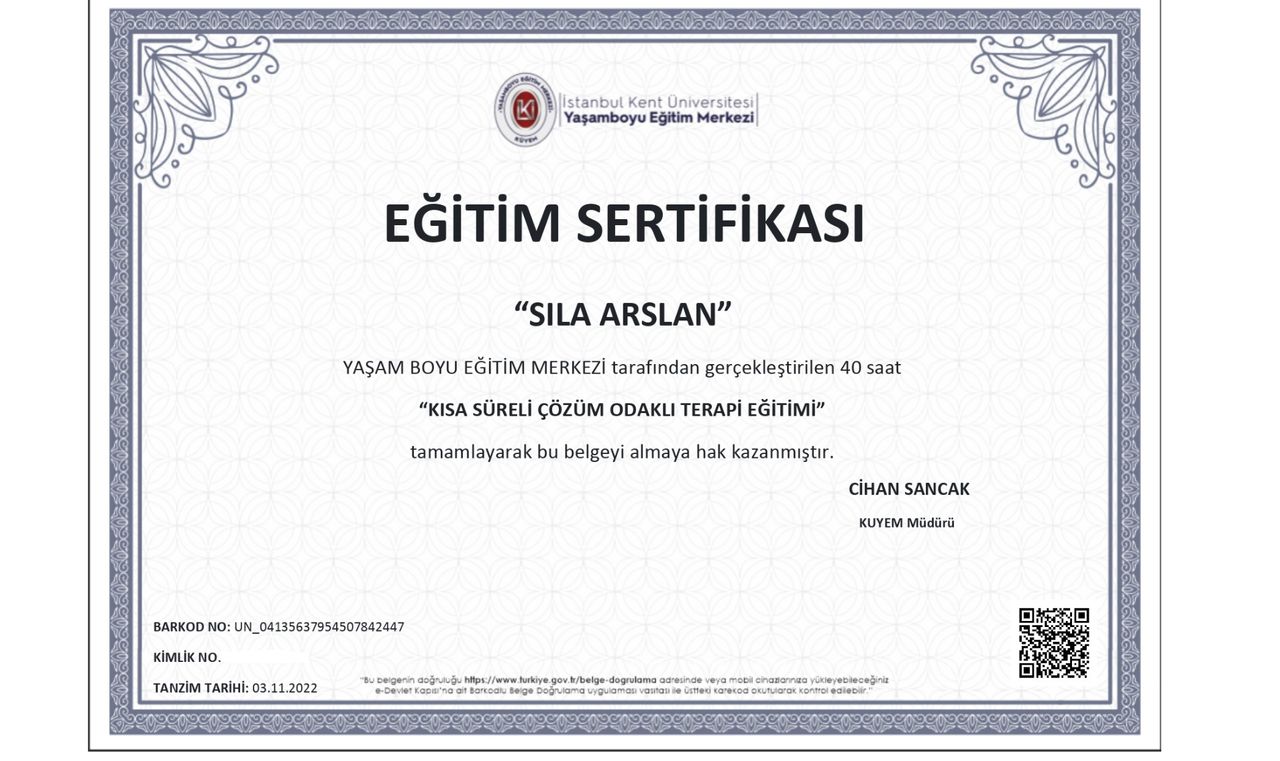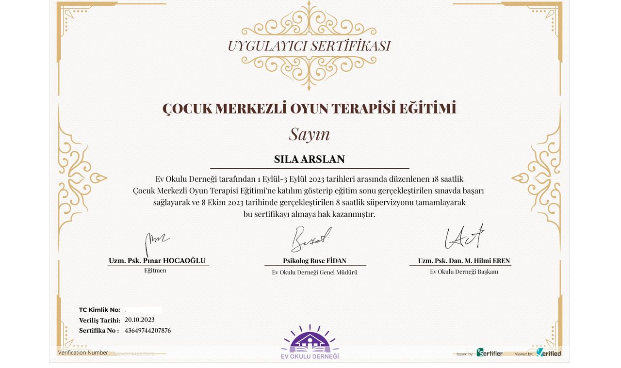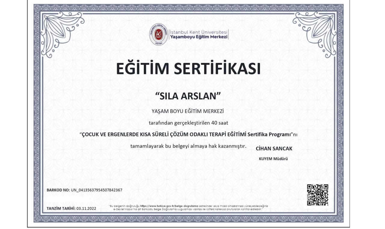Çocuğum için geliyoruz.İhtiyaç halimde seans dışında da bize her zaman yardımcı oluyor Sıla hanım.Kızım severek geliyor.Başvurduğumuz sorunu da şuna çözüme ulaştırdık.